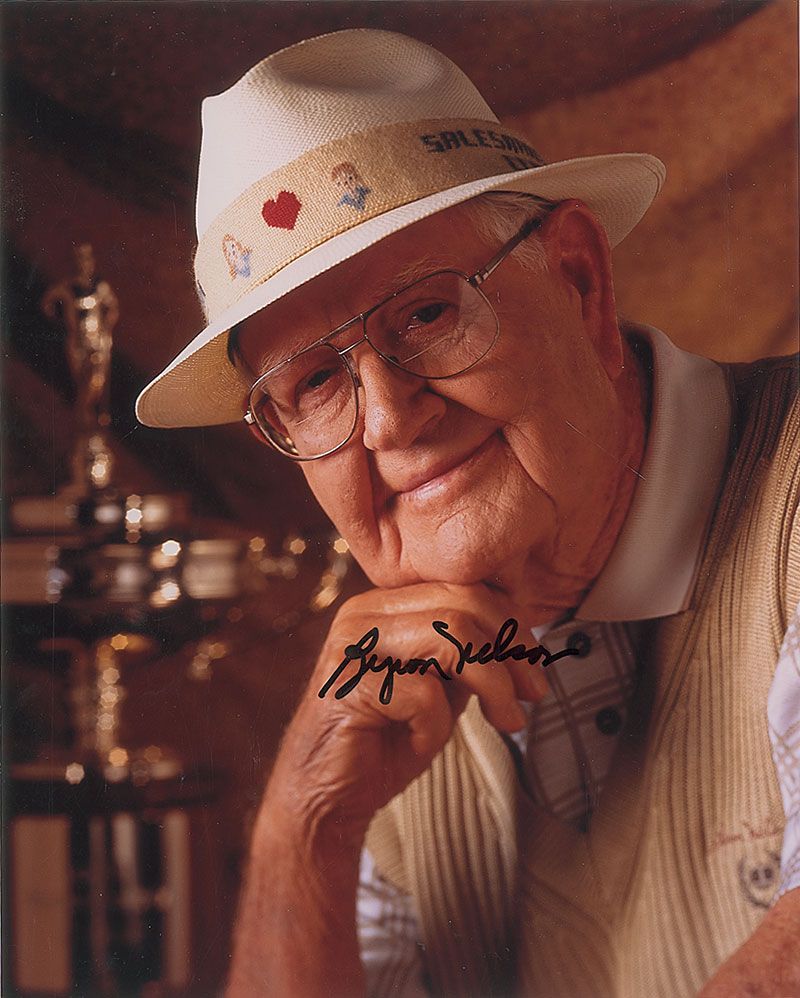 Color glossy 8 x 10 photo of the golfer in old age, signed in black felt tip. In very fine condition.