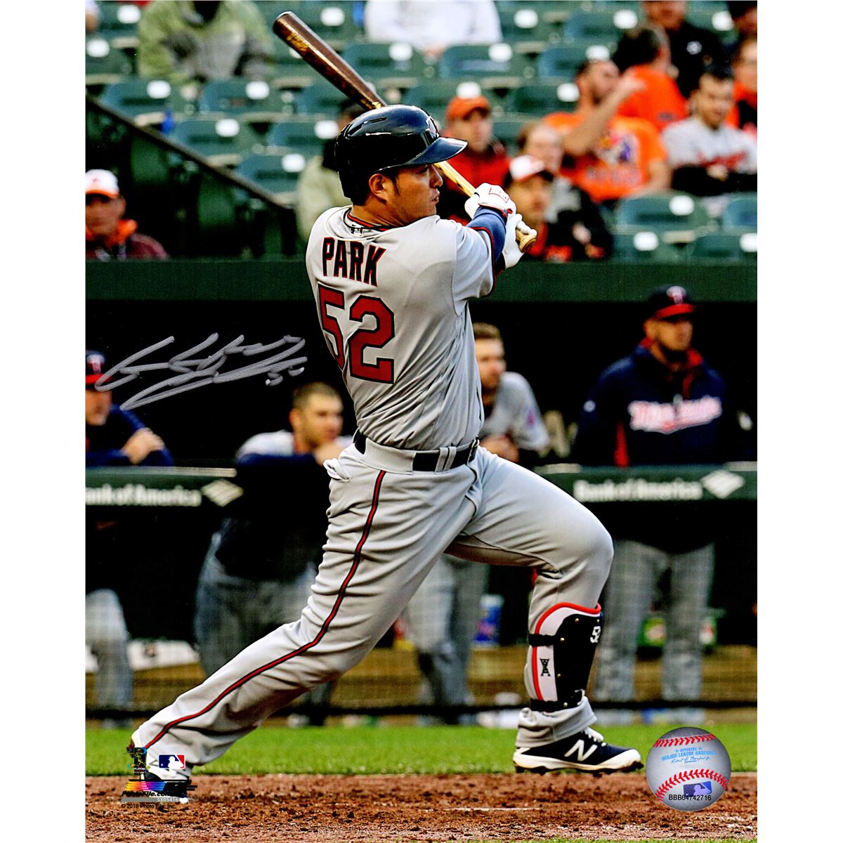 Byung Ho Park signed Minnesota Twins 1st MLB base hit during MLB debut action 8x10 photo. Item comes with a Schwartz Sports Memorabilia tamper-proof numbered hologram and Certificate of Authenticity which can be verified online.