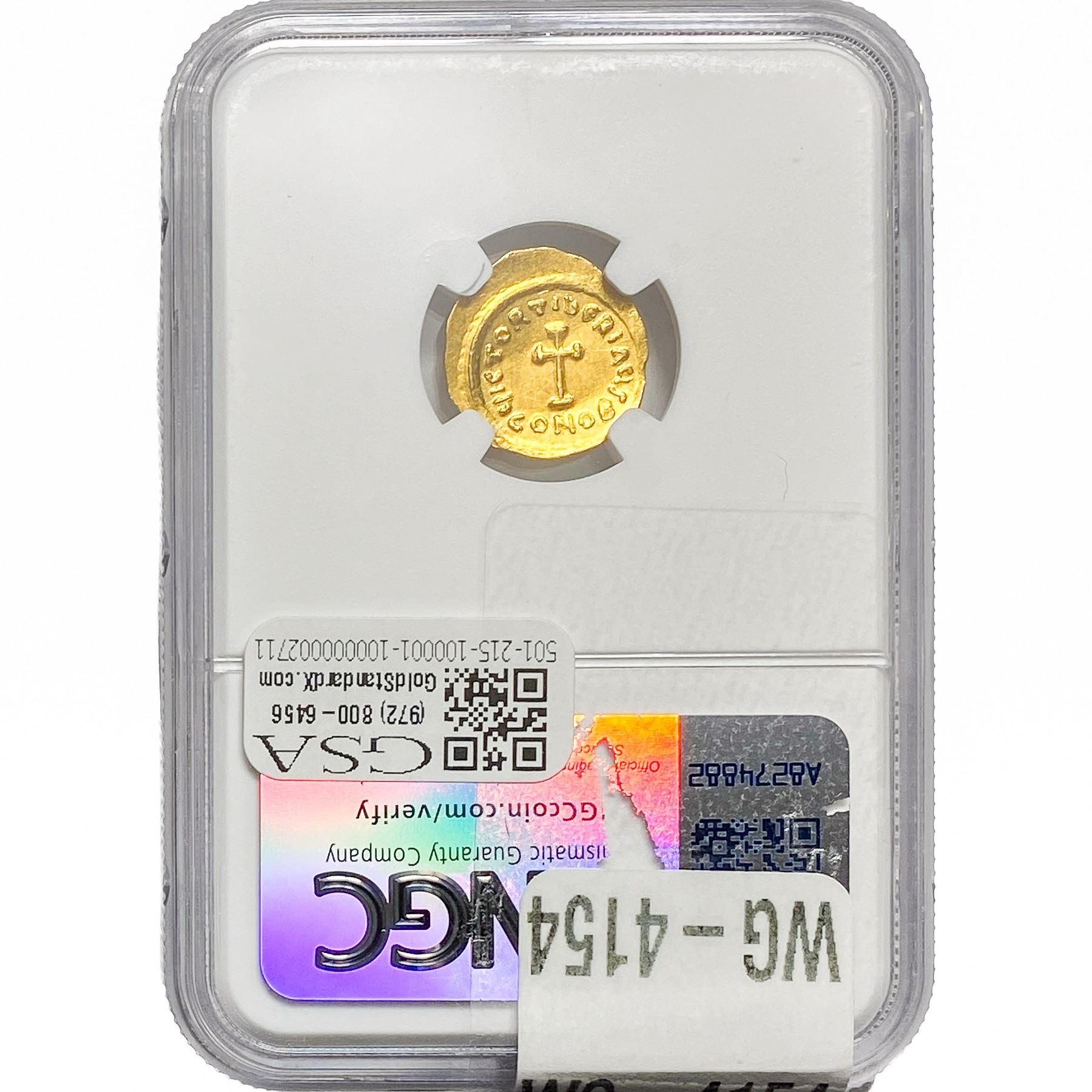 Byzan. Tiberius II Constant. 578-582 Gold Tremissis NGC