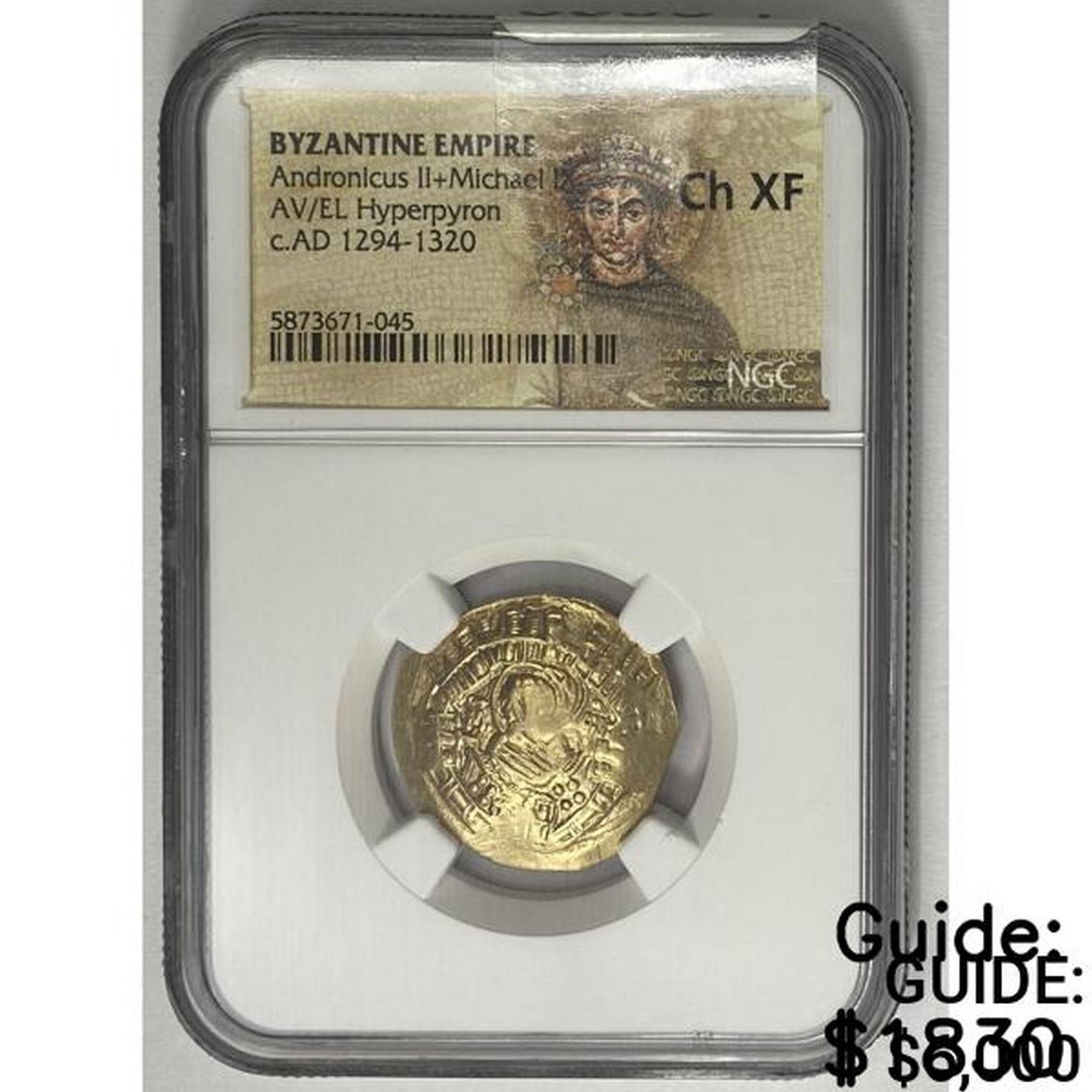 Byzantine Andr. II/Mich. IX Gold Hyperpryron NGC Ch XF