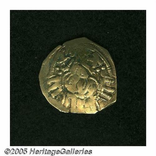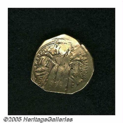 <B>Andronicus II and Michael IX. Lot of two EL hyperpyra.</B></I> Constantinople. The Virgin, <I>orans,</B></I> within city walls with six towers / Andronicus II and Michael IX kneeling either side of Christ, who crowns emperors. SB 2396. One coin good VF, the other near VF, crudely struck.