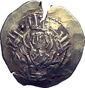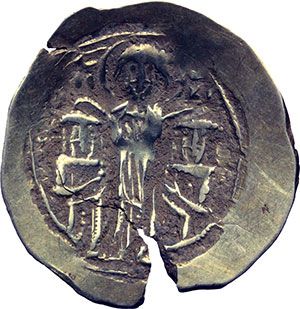 Byzantine. Andronicus II with Michael IX (1295-1320). Au hyperpyron, Constantinople. Obv.: Bust of Mary, orans, within city walls. Rev.: Christ crowning Andronicus I and Michael kneeling facing to either side. LPC 62,1. Sear 2396. AU. g. 4.32 mm. 27.00 VF. Impero Bizantino. Andronico II e Michele IX (1295-1320). AU hyperpyron, Costantinopoli. D/ Busto di Maria Virgo orans. Intorno, le mura della città. R/ Andronico I e Michele, inginocchiati di fronte, ai lati di Cristo che li incorona. LPC 62,1. Sear 2396. AU. g. 4.32 mm. 27.00 BB.