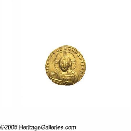 <B>Constantine VII, with Romanus II.</B></I> A.D. 913-959. AV solidus (18 mm, 4.28 g). Constantinople, A.D. 945-959. Nimbate bust of Christ facing, raising hand in benediction and holding Gospels / Crowned facing busts of Constantine VII and Romanus II, holding patriarchal cross between them. DOC 15; SB 1751. VF.