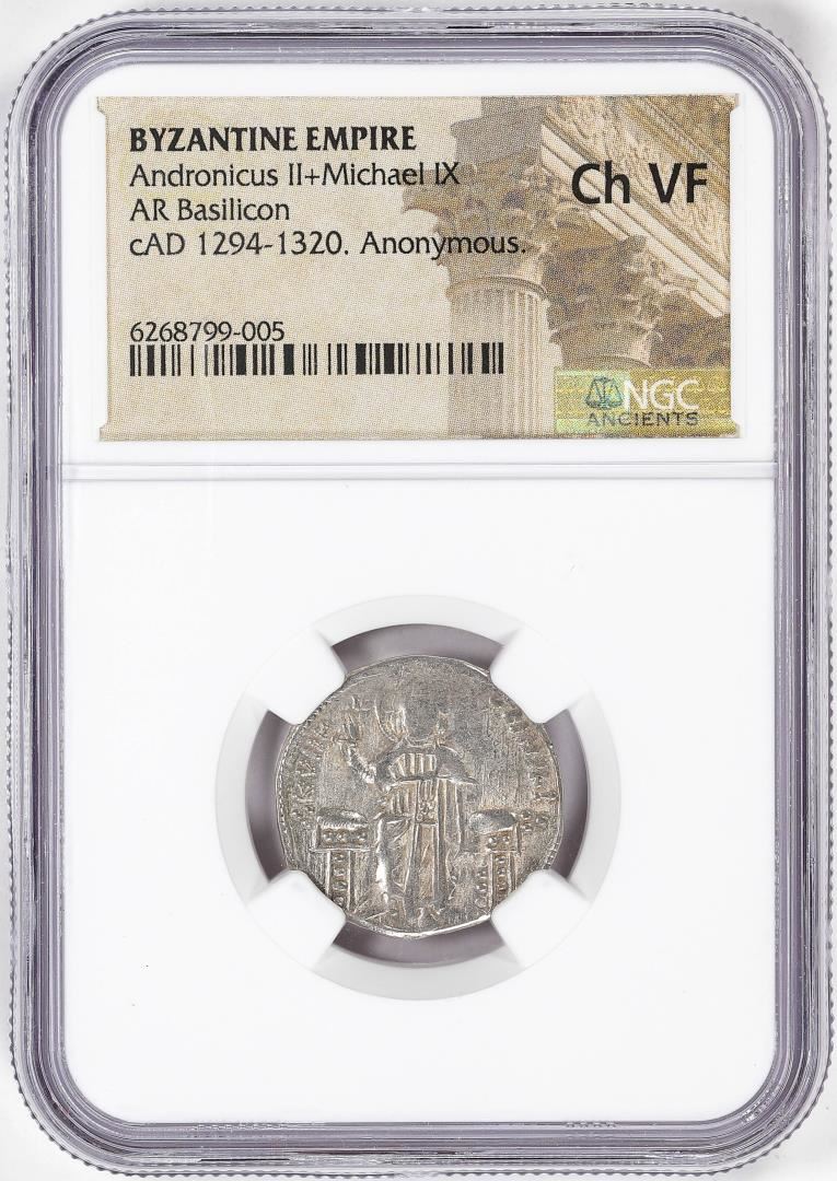 One Byzantine Emp 1294-1320 c.AD Andronicus II & Michael IX AR Basillicon Coin NGC Ch VF. NGC Certified.