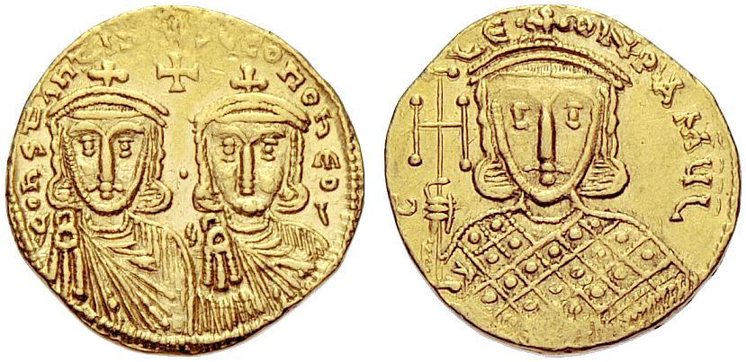 The Byzantine Empire. Constantine V Copronymus, 741 – 775, with Leo IV from 751. Solidus circa 751-757, AV 4.47 g. CO§StA§tI§OS S LEO§ O §EOS Busts of Constantine V and Leo IV facing, each wearing crown and chlamys; between them a dot, and above, cross. Rev. 6 – LE – ON PAMYL Facing bust of Leo III, wearing crown and loros, holding cross potent on base. DO 2a. Sear 1551. Some minor areas of weakness and from slightly worn dies, otherwise about extremely fine