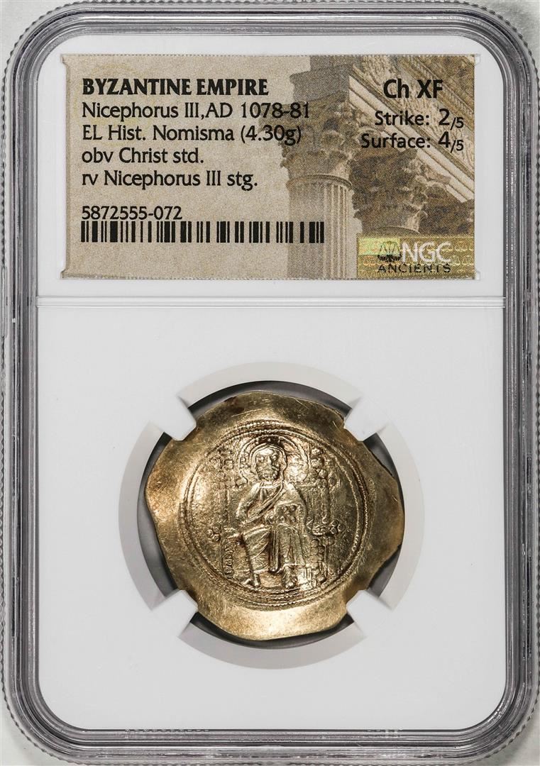 One Byzantine Empire 1078-81 Nicephorus III Histamenon Nomisma Ancient Coin NGC CH XF. NGC Certified.