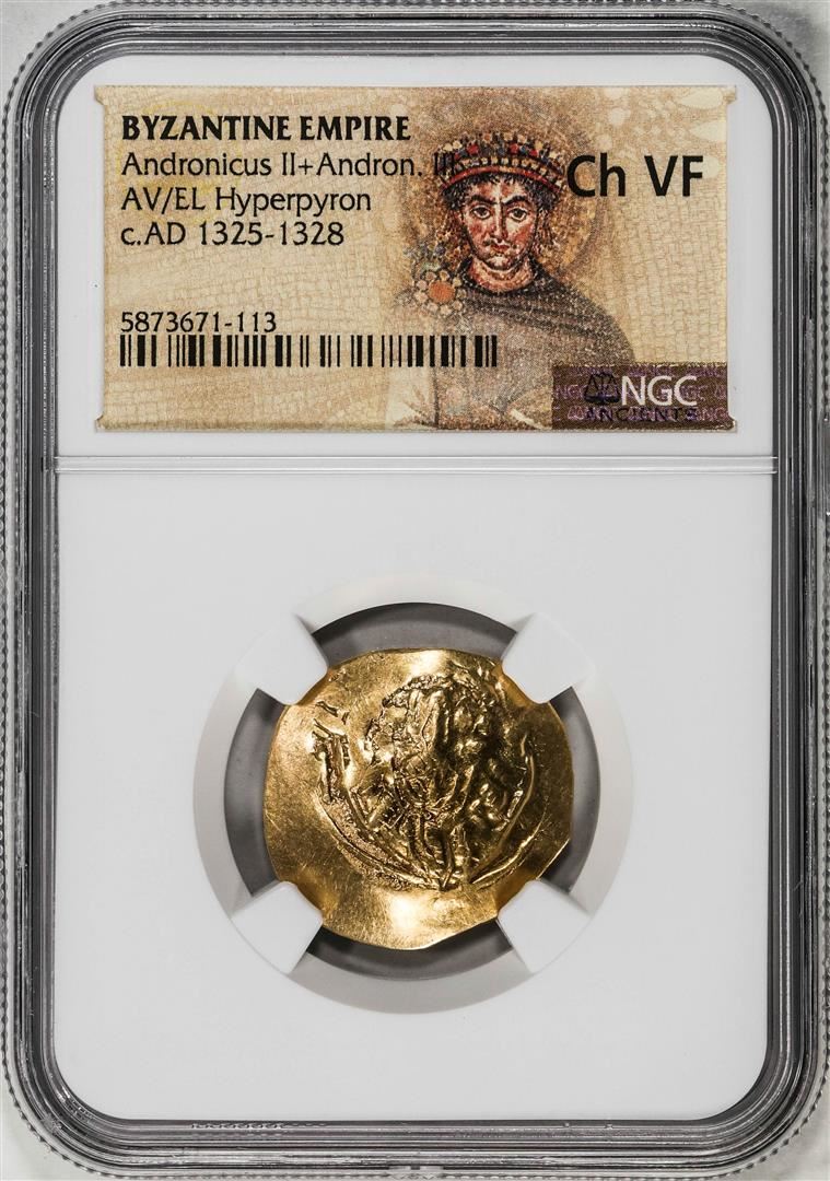 One Byzantine Empire 1325-1328 AD Andronicus II & III Hyperpyron Ancient Coin NGC CH VF. NGC Certified.