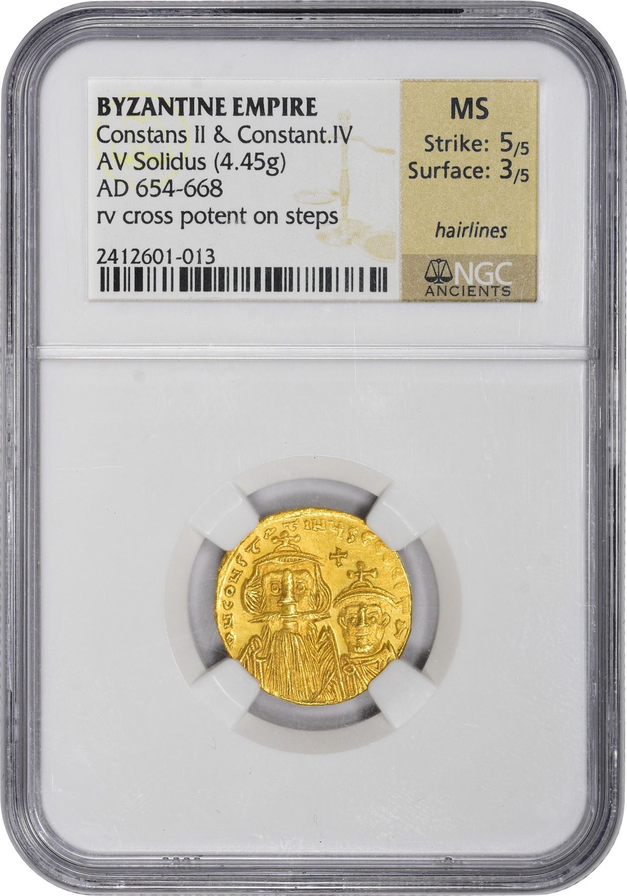 Title: Byzantine Empire. Constans II & Constantine IV. AD 654-668 Gold Solidus. Mint State NGC.