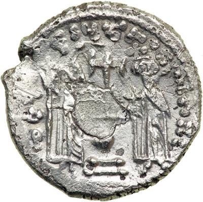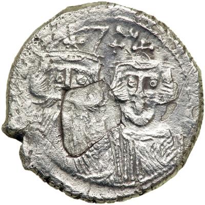 Byzantine Empire. Constans II and Constantine IV with Heraclius and Tiberius, 641-668. Silver Hexagram (6.45g). Constantinople. Another, all as previous. DOC 57; MIB 152; Sear 998. Fine, but with serious surface flaws affecting the design on both sides.