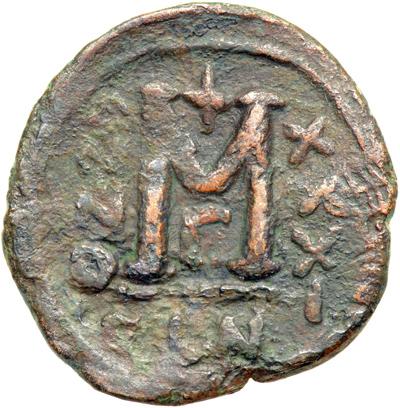 Byzantine Empire. Constantine IV alone, 681-685. follis or 40 nummi (13.8g), Constantinople, 3rd officina, 684/5 (regnal. year 31). Helmeted and cuir. bust three-quarter face to r., with short beard, holding spear and shield. Rev. Large M between ANNO and XXXI. DOC 33b; MIB 81; Sear 1177. Fine, areas of erosion on obverse.