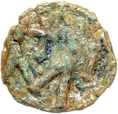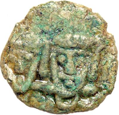 Byzantine Empire. Constantine V, 741-775. follis or 40 nummi (1.02g), Ravenna, 741/2 (regnal year 1). Facing crowned busts of Constantine V (on l.) and Leo III (deceased), cross above. Rev. Large M between [ANNO] and I, cross above, [RA]V beneath. DOC -; Ranieri (La Monetazione di Ravenna Antica) 829; Sear -. Very Fine with green patina, extremely rare.