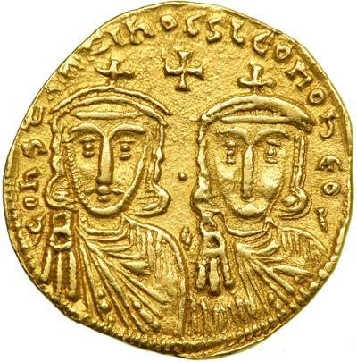 Byzantine Empire. Constantine V and Leo IV, 751-775. Gold Solidus (4.38g), Constantinople. 757-75. Another, all as previous, but the bust of Leo IV is larger and without officina mark at end of rev. legend. DOC 2d; Sear 1551. Good Very Fine, scratches in reverse field to right.