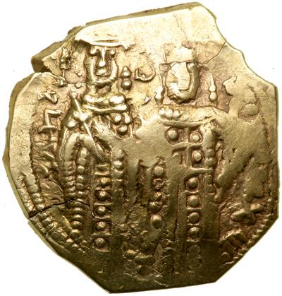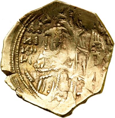 Byzantine Empire. John V and Anna of Savoy, 1341-1347. Gold Hyperpyron Nomisma (3.33g), Constantinople. Similair to previous lot but with no sigla. DOC 942; PCPC 190 (sigla 1); LPC p. 116, 1; Sear-Bendall 2466. Nearly Very Fine and rare, areas of flatness.