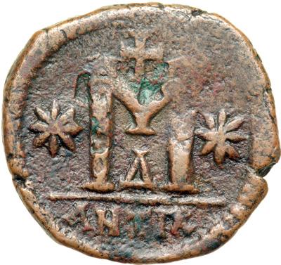 Byzantine Empire. Justin I and Justinian I, Apr.-Aug. 527. follis or 40 nummi (14.87g), Antioch, 4th