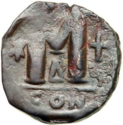 Byzantine Empire. Justin I and Justinian I, Apr.-Aug. 527. follis or 40 nummi (16.62g), Constantinople, 4th officina. Diad. bust of Justin r. Rev. Large M between star and cross. DOC 11. (citing Ratto 439); MIB 4; Sear 126. Good fine with brown patina and rare.