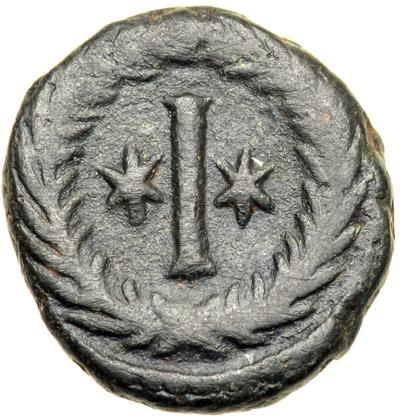 Byzantine Empire. Justinian I, 527-565. decanummium or 10 nummi (5.5g), Rome, 542-7. Diad. bust r. Rev. Large I between two stars, all within wreath. DOC (Uncertain Mints) 363; MIB 227; Sear 307. Fine to Very Fine.