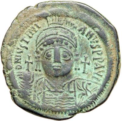 Byzantine Empire. Justinian I, 527-565. follis or 40 nummi (22.3g), Constantinople, 4th officina, 54