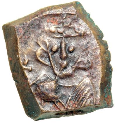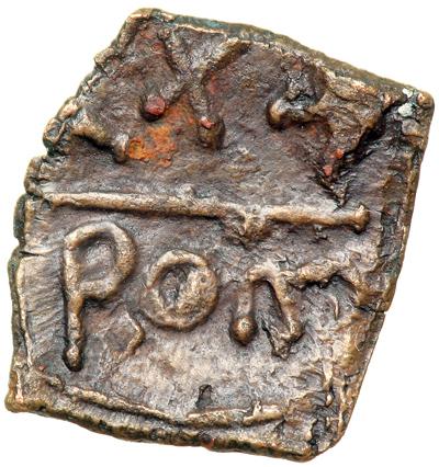 Byzantine Empire. Justinian II, first reign, 685-695. billon (?) three-quarter follis or 30 nummi (1.44g), Rome. No legend, beardless crowned bust facing, holding gl. cr. Rev. XXX, Rom in ex. DOC 69 var. (mint mark retrograde); MIB 77; Spahr 222; Sear 1309. Extremely Fine with nice brown patina, struck on the square flan typical of this enigmatic series.