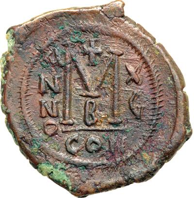 Byzantine Empire. Maurice Tiberius, 582-602. follis or 40 nummi (11.23g), Constantinople, 2nd offici
