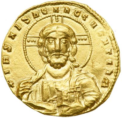 Byzantine Empire. Nicephorus II and Basil II, 963-969. Gold Tetarteron Nomisma (3.88g), Constantinople. Bust of Christ facing, wearing nimbus cr. and holding book of Gospels. Rev. Facing crowned busts of Nicephorus, bearded and wearing loros, on l., and Basil II, beardless and wearing chlamys, on r., holding between them long patriarchal cross. DOC 3 var (rev. legend); Sear 1779 var. Extremely Fine and rare, but edge clipped.