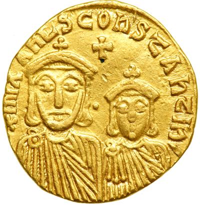Byzantine Empire. Theophilus, 829-842. Gold Solidus (4.31g), Constantinople. 830/31-840. Crowned bust of Theophilus facing, bearded, wearing chlamys and holding patriarchal cross and akakia. Rev. Facing crowned busts of the emperor's deceased father, Michael II, bearded (on l.) and his deceased son, Constantine, much shorter and beardless (on r.), each wearing chlamys, cross between their heads. DOC 3d; Sear 1653. Very Fine.