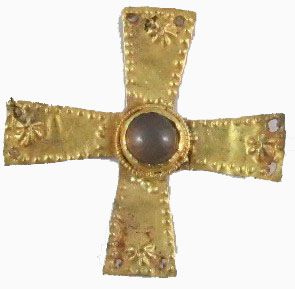 Byzantine Gold Cross dating approx 8th Century AD. With Yellow agate stone. 4x4cm