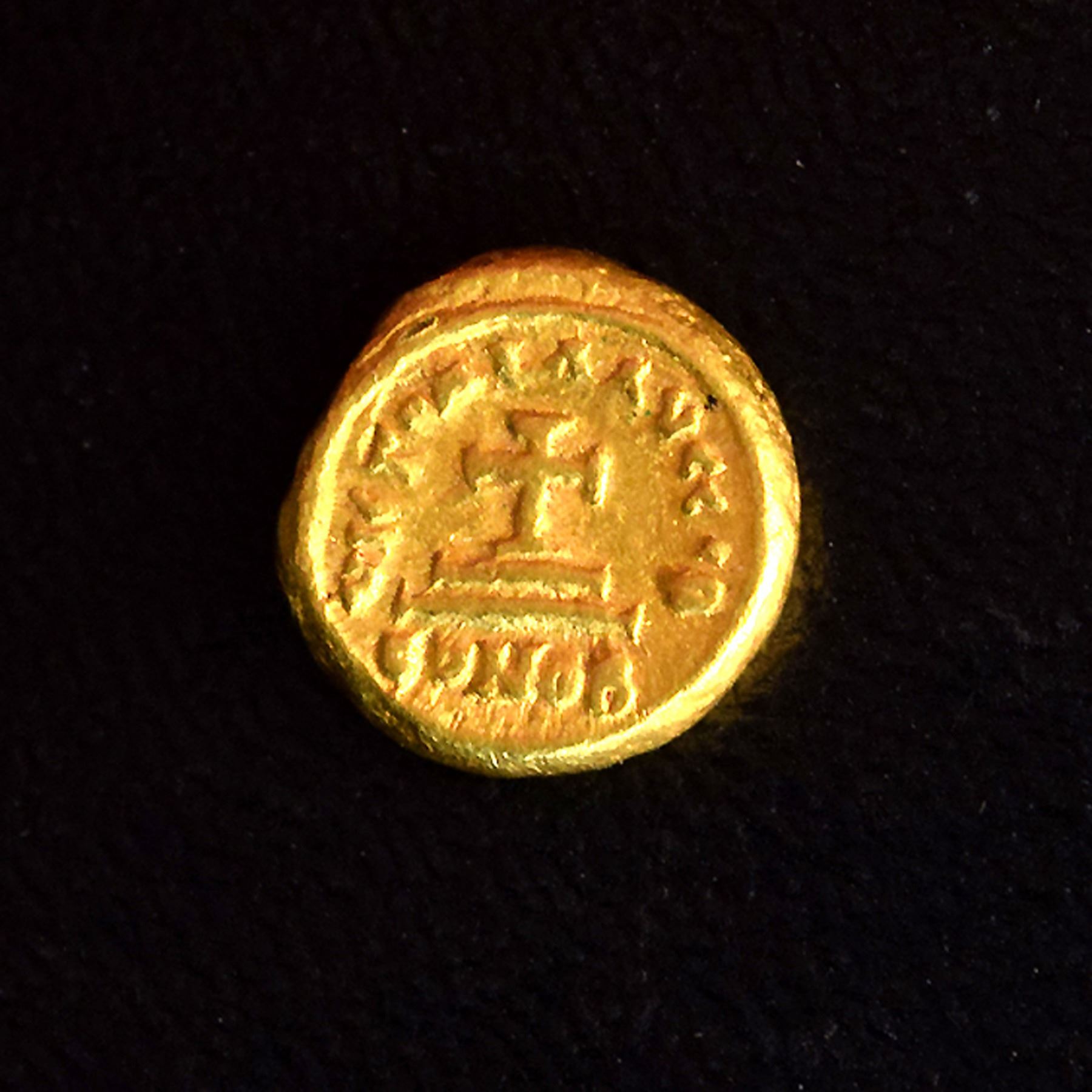 Byzantine Empire, Heraclius & Heraclius Constantine, gold Solidus. Carthage mint, with it's typical thick fabric and small module. Indicational year : IB = 621/2 AD. Obv: Facing bust of Heraclius, on left and Heraclius Constantine, with highly blundered legends, and indicational year. Rev: Cross potent on two steps, Victoria AVGG IB. Typical EF for type, with some flatness on obverse high points, and full lustre ; however there is a small filed adjustment on the edge, possibly due to mounting. Sear 867. 12mm, 4.46 gr.