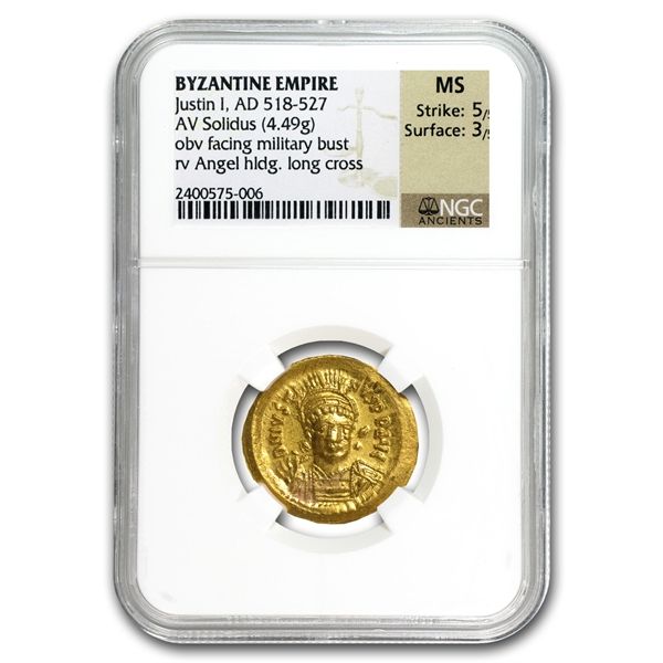 Byzantine Gold Solidus (Justin I) 518-527AD NGC MS **|**|** Byzantine Gold Solidus (Justin I) 518-527AD NGC MS ; MSRP: $0