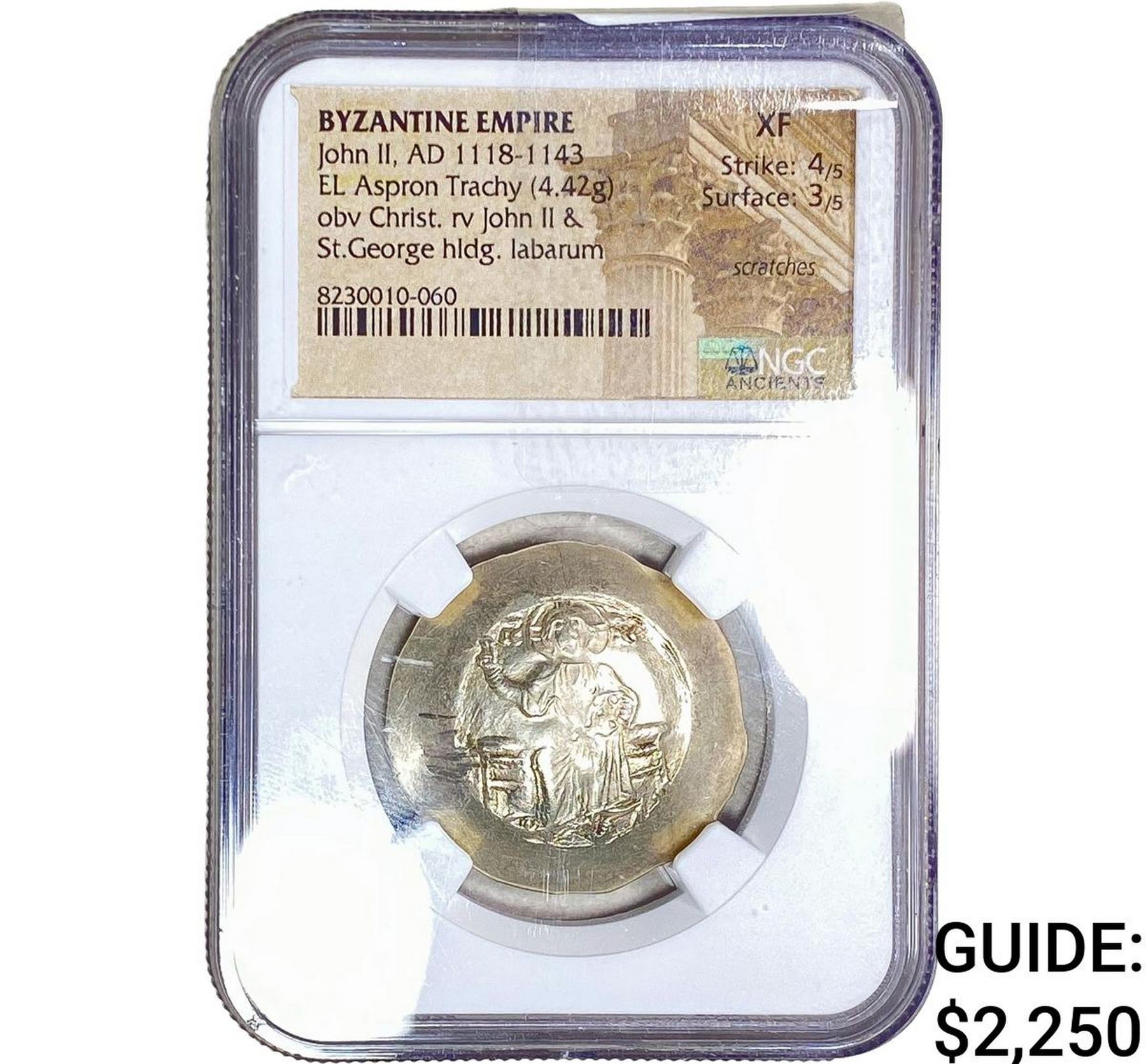 Byzantine JohnII 1118-1143 EL Aspron Trachy 4.42G NGC XF