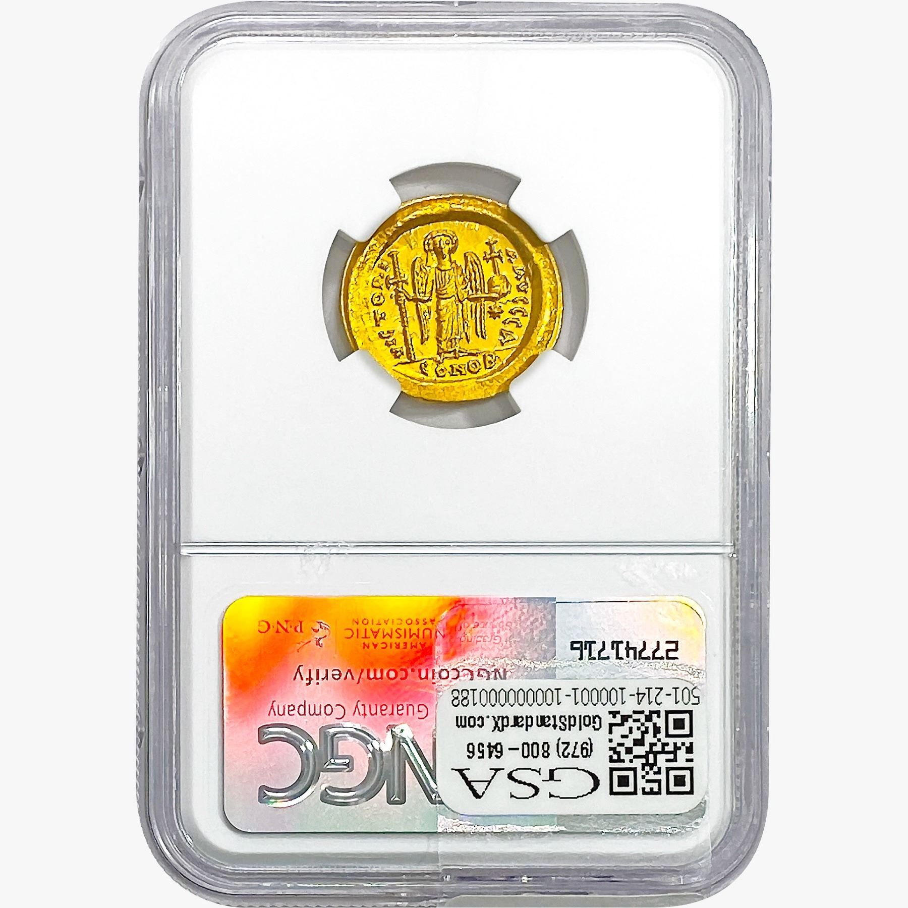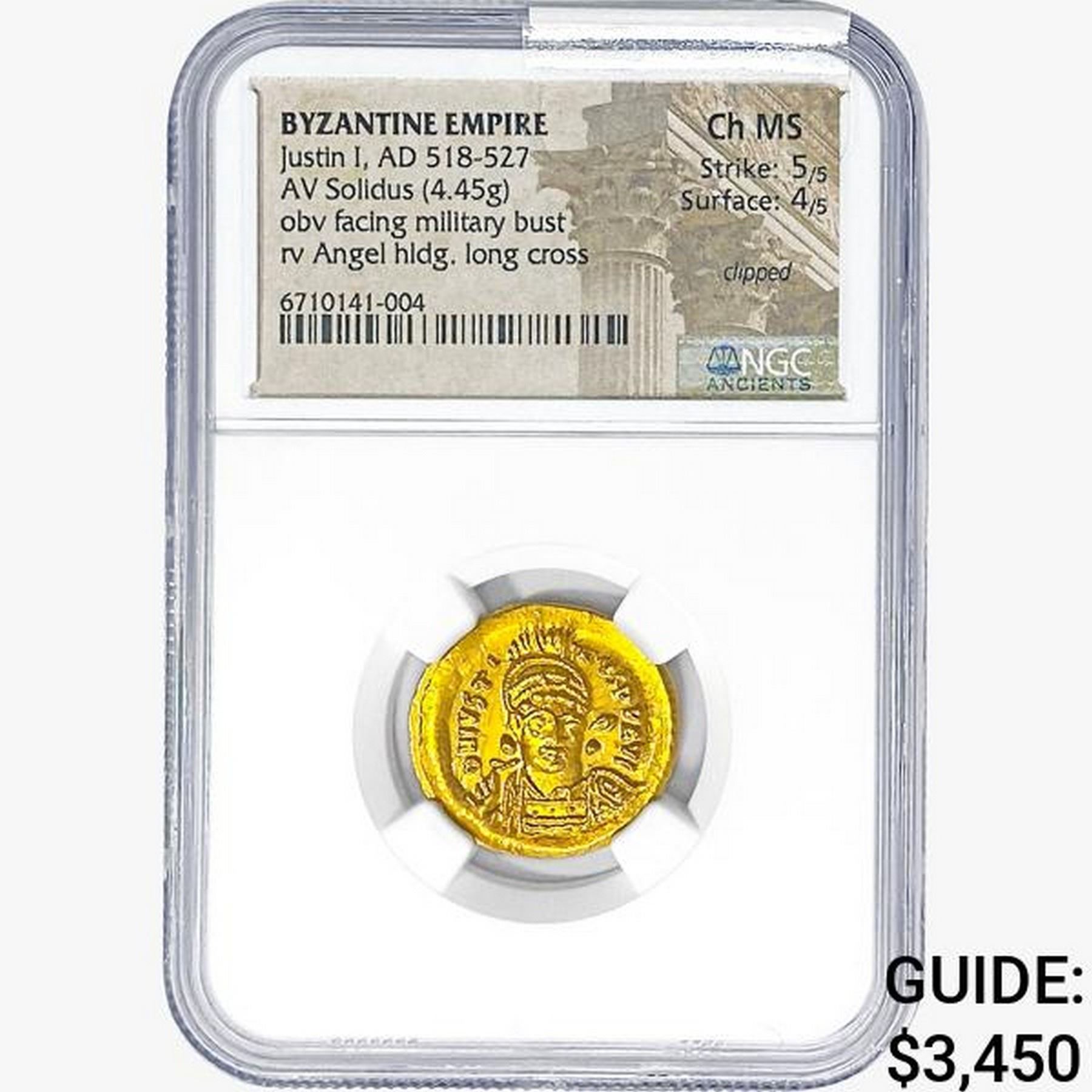 Byzantine Justin I 518-527 Gold Solidus NGC Ch MS