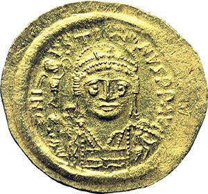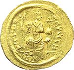 Byzantine. Justin II (565-578). Solidus, Constantinople. Obv.: DN IVSTINVS PP AVI. Elmeted and cuirassed beardless bust facing, holding Victory on globe and shield. Rev.: VICTORIA AVGGGH. Constantinople seated facing, head right, holding spear and globus cruciger. CONOB in exergue. D.O. 4. AU. g. 4.48 mm. 22.00 EF/About EF. Bright surfaces. Impero Bizantino. Giustino II (565-578). Solido, Costantinopoli. D/ DN IVSTINVS PP AVI. Busto imberbe elmato e corazzato di fronte, che tiene Vittoria su globo e scudo. R/ VICTORIA AVGGGH. Costantinopoli, seduta di fronte con il capo a destra, tiene lancia e globo crucigero. In esergo: CONOB. D.O. 4. AU. g. 4.48 mm. 22.00 SPL/qSPL. Fondi lucenti.