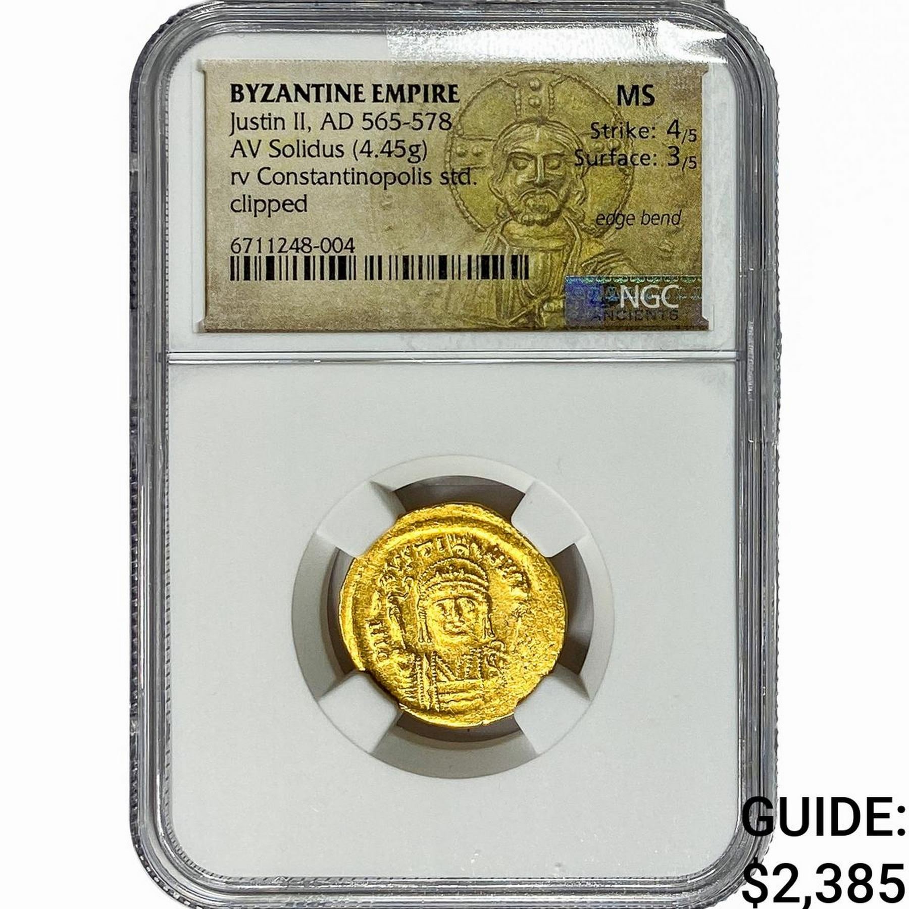 Byzantine Justin II AD 565-578 Gold Solidus 4.45G NGC MS
