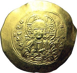 Byzantine. Manuel I Comnenus (1143-1180). AU hyperpyron, Constantinople. Obv.: +KE ROHTEI. Bust of Chirst facing, wearing pallium and colobium, raising right hand in benediction. Rev.: MANOVH? ?EC?OT[H] ?? ???F??? G?INHT. Crowned Manuel standing facing, wearing clamide, holding labarum and globus surmounted by patriarchal cross. Manus Dei to upper right. Sear 1956. AU. g. 4.39 mm. 29.50 Minor scratch on Rev/ outside dot border, otherwise About EF. Impero Bizantino. Manuele I Comneno (1143-1180). AU hyperpyron, Costantinopoli. D/ +KE ROHTEI. Busto nimbato di Cristo di fronte, che indossa pallium e colobium, benedice con la mano destra e tiene un papiro arrotolato. R/ MANOVH? ?EC?OT[H] ?? ???F??? G?INHT. Manuele stante di fronte indossa corona e clamide e tiene labaro e globo sormontato da croce patriarcale. Nel campo in alto a destra, manus Dei. Sear 1956. AU. g. 4.39 mm. 29.50 Lieve graffito al R/ esterno alla perlinatura, altrimenti qSPL.