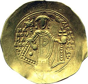 Byzantine. Manuel I Comnenus (1143-1180). AU hyperpyron, Constantinople. Obv.: +KE ROHTEI. Bust of Chirst facing, wearing pallium and colobium, raising right hand in benediction. Rev.: MANOVH? ?EC?OT[H] ?? ???F??? G?INHT. Crowned Manuel standing facing, wearing clamide, holding labarum and globus surmounted by patriarchal cross. Manus Dei to upper right. Sear 1956. AU. g. 4.39 mm. 29.50 Minor scratch on Rev/ outside dot border, otherwise About EF. Impero Bizantino. Manuele I Comneno (1143-1180). AU hyperpyron, Costantinopoli. D/ +KE ROHTEI. Busto nimbato di Cristo di fronte, che indossa pallium e colobium, benedice con la mano destra e tiene un papiro arrotolato. R/ MANOVH? ?EC?OT[H] ?? ???F??? G?INHT. Manuele stante di fronte indossa corona e clamide e tiene labaro e globo sormontato da croce patriarcale. Nel campo in alto a destra, manus Dei. Sear 1956. AU. g. 4.39 mm. 29.50 Lieve graffito al R/ esterno alla perlinatura, altrimenti qSPL.