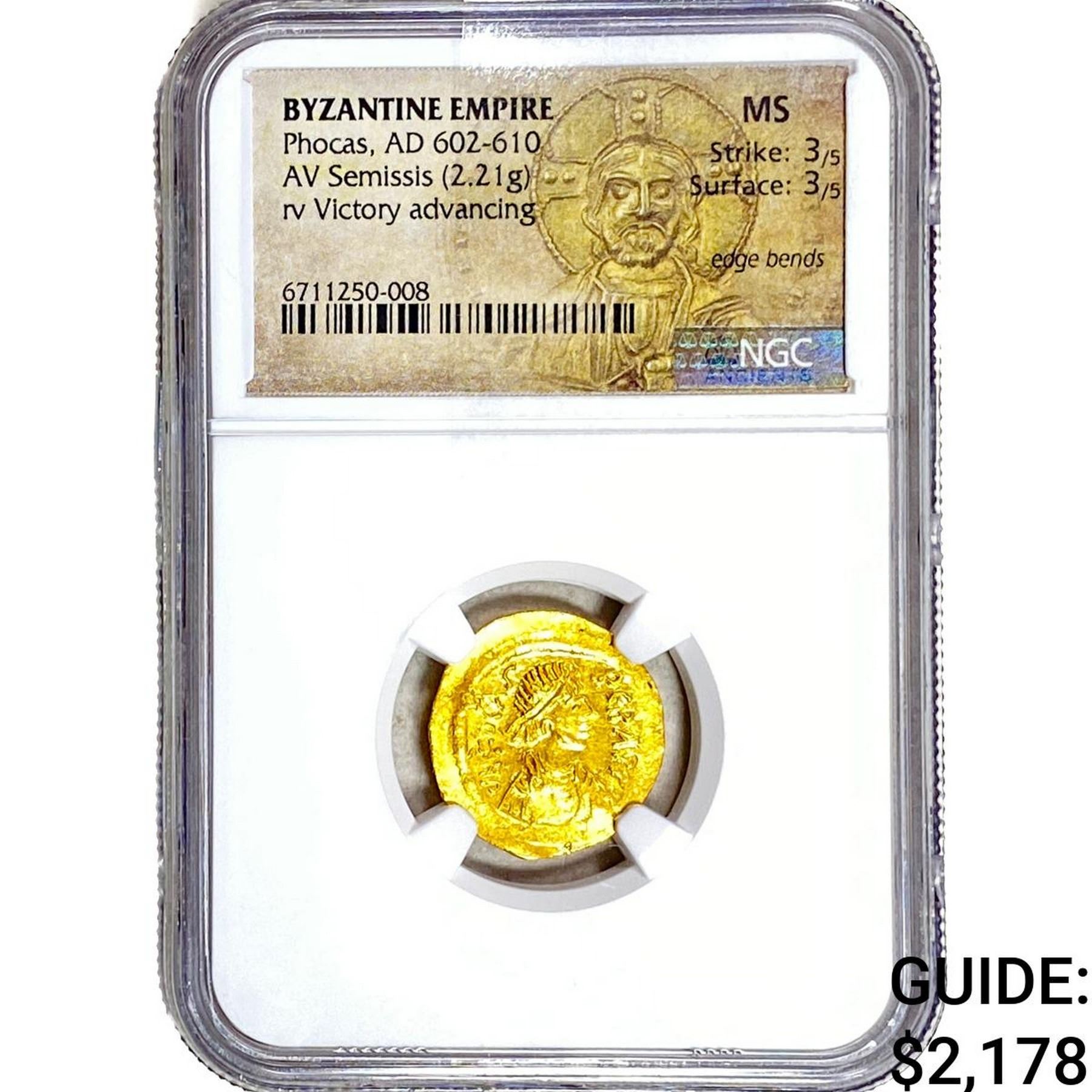 Byzantine Phocas 602-610 AD Gold Semissis NGC MS