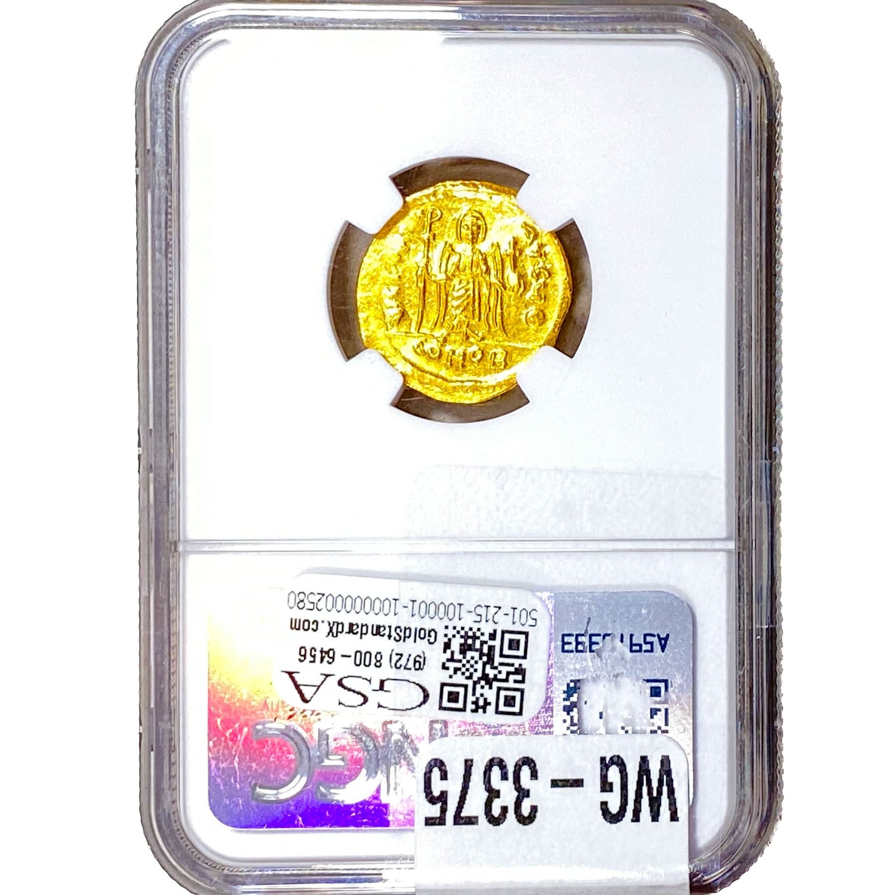 e. Coins sold referencing a third-party grading service are sold “AS IS” without any express or implied warranty, except for a guarantee by GSA that they are genuine. Removal or alteration of the holder, voids all of Bidder’s claims concerning that Product. Certain warranties may be available from the grading services and Bidders are referred to them for further details: Numismatic Guaranty Corporation (NGC), PO Box 4776, Sarasota, FL 34230, www.ngccoin.com/services/writtenguarantee.asp; Professional Coin Grading Services (PCGS), PO Box 9458, Newport Beach, CA 92658, www.pcgs.com/guarantee.html; ANACS, 6555 S. Kenton St., Ste. 303, Englewood, CO 80111; and Independent Coin Grading Co. (ICG), 7901 East Bellview, Ave., Suite 50, Englewood, CO 80111.