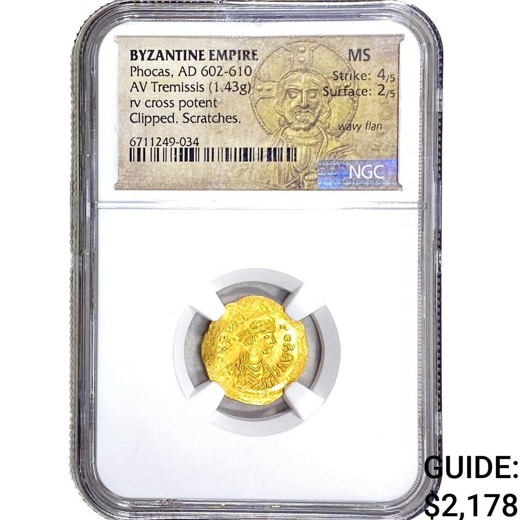 Byzantine Phocas 602-610 AD Gold Tremissis NGC MS