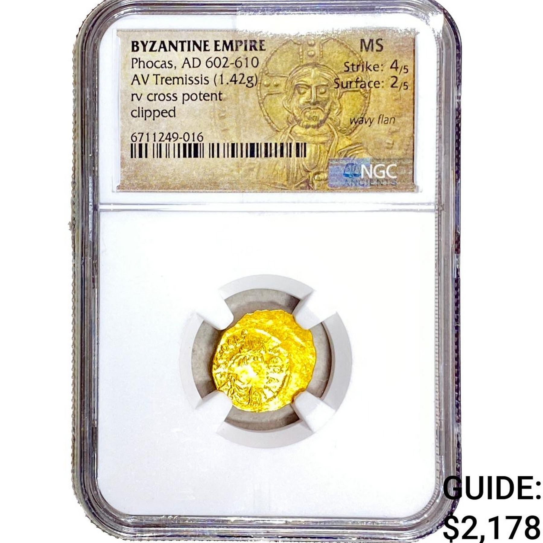Byzantine Phocas 602-610 AD Gold Tremissis NGC MS
