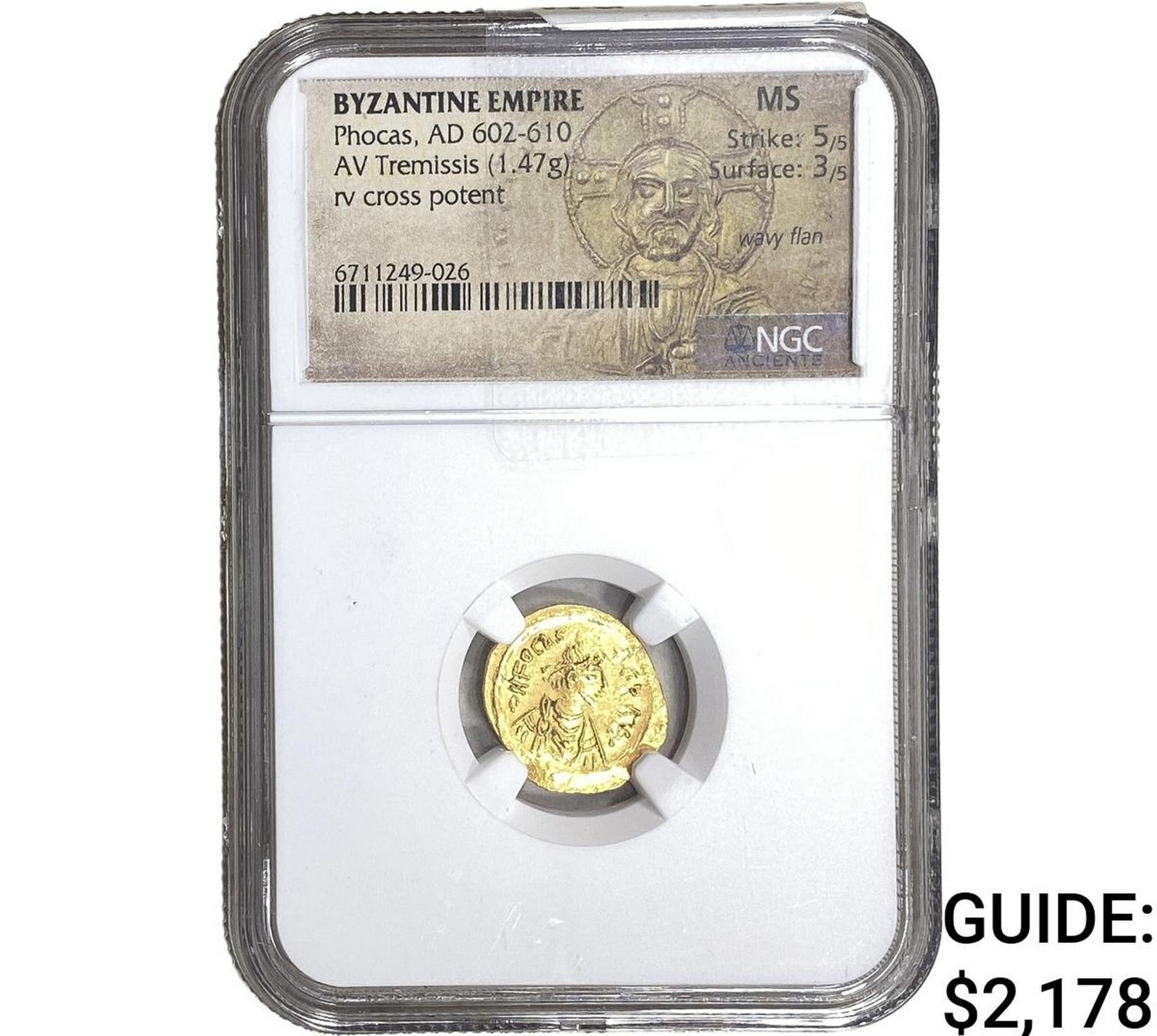 Byzantine Phocas 602-610 AD Gold Tremissis NGC MS