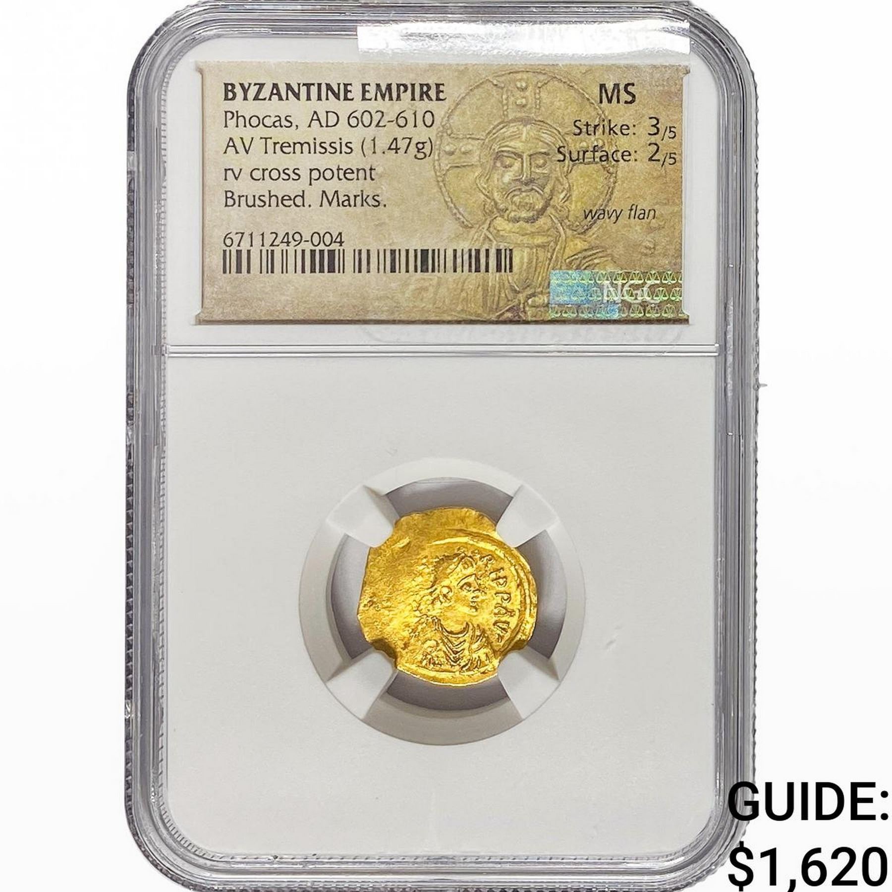 Byzantine Phocas, AD 602-610 Gold Tremissis 1.47G NGC MS