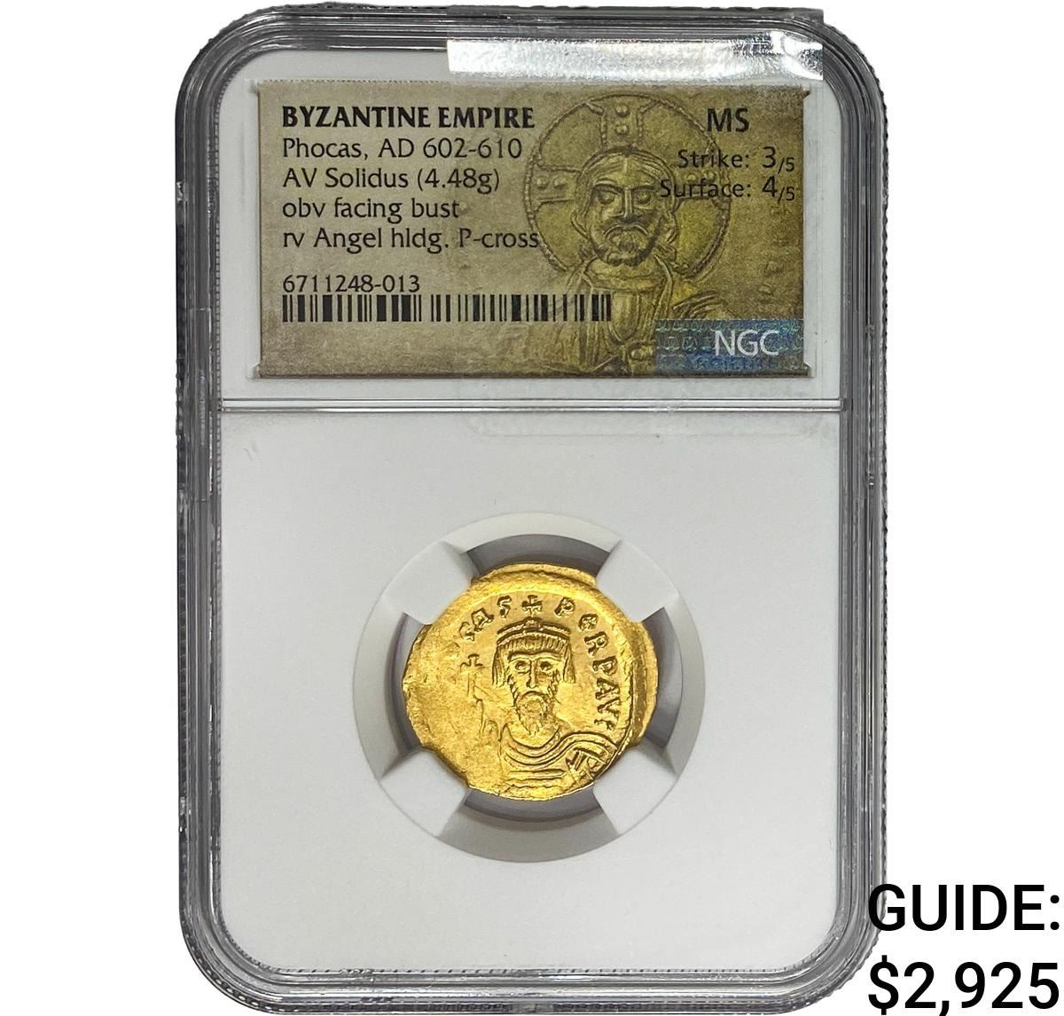 Byzantine Phocas AD602-610 Gold Solidus 4.48g MS