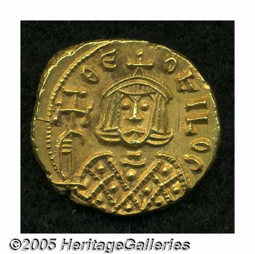 <B>Theophilus.</B></I> A.D. 829-842. AV solidus (16 mm, 3.84 g). Syracuse, A.D. 831-842. Crowned facing bust, wearing loros and holding cross potent / Crowned facing bust, wearing chlamys and holding globus cruciger. DOC 24; SB 1670. Choice VF.