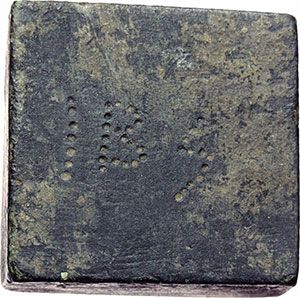 Byzantine. Weight, 2-ounce. Obv.: I B S. Rev.: Plain. AE. g. 52.90 Dimensions: 24x24x10 mm. EF. Impero Bizantino. Peso da due once. D/ I B S. R/ Liscio. AE. g. 52.90 Dimensioni: 24x24x10 mm. SPL.