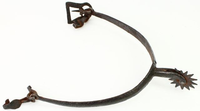 cleaned, heel band 6" wide with 1 1/2" shank, original 1 1/2" rowel intact. Est. 250-450