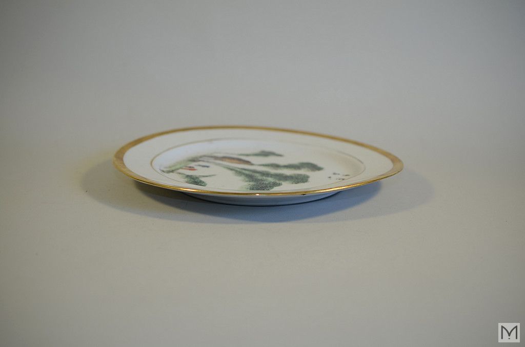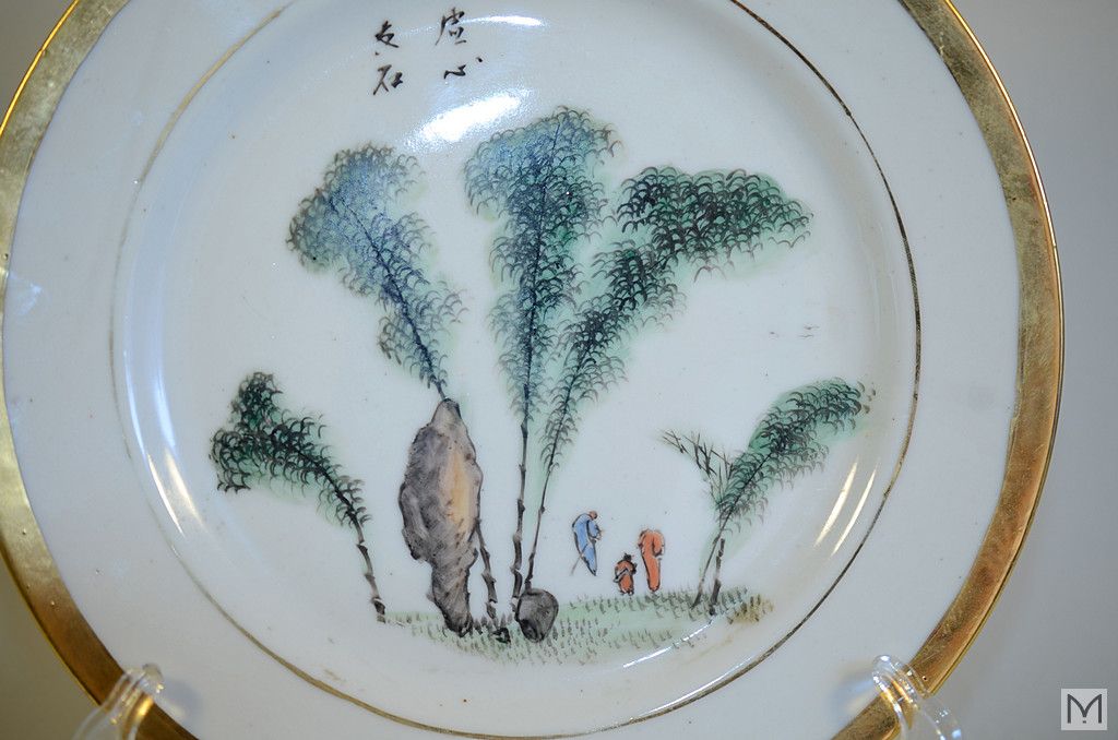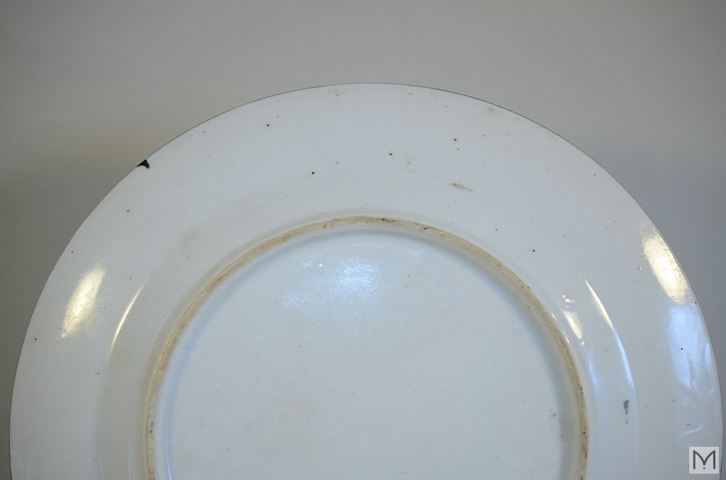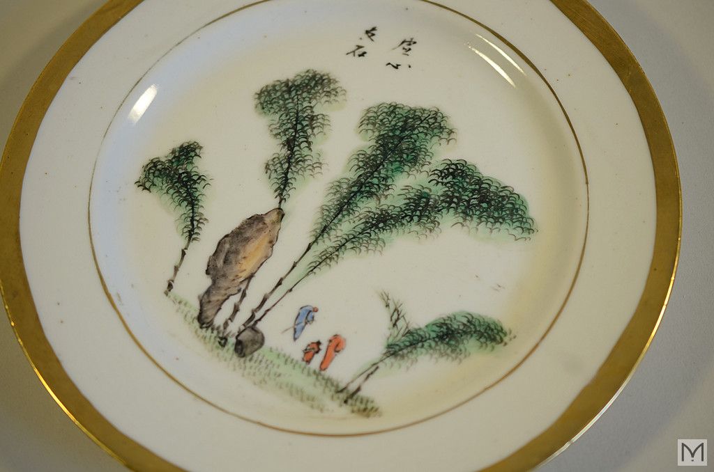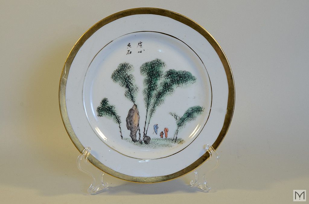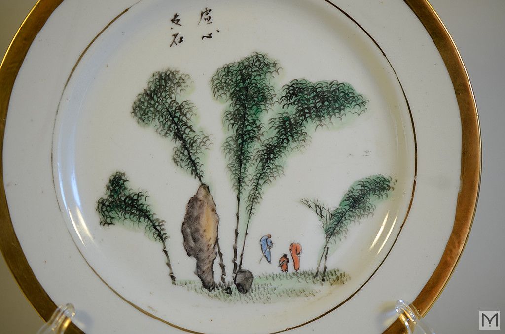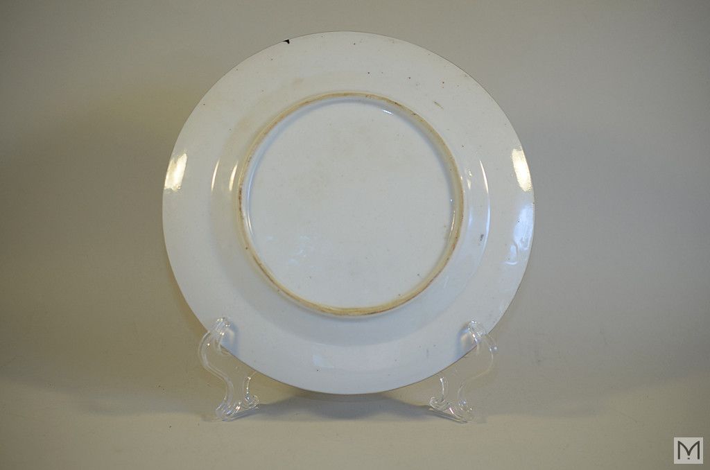 C1750 – Possibly Worcester or Liverpool? Early British Gilt & Painted Porcelain Dish. In the Chinese Fashion bearing a faux 4 character mark.