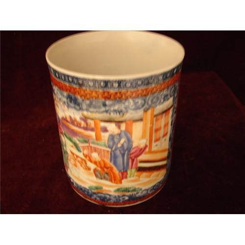 Circa 1775 Chinese Export Porcelain Mug/Tankard also known as a drinking vessel made for the european market in the very popular and beautiful mandarin palette pattern. We have three of these mugs in three sizes that just came out of a Private Collection of a Washington, D.C. Family who traveled and purchased many things abroad. This mug is actually one of three mugs that are a set. This is #1 of the three. this one is 5 3/4" in height, with the opening diameter being 4 3/4" and the base has a diameter of 4 1/2". Excellent Condition and Very Good Quality. This pattern is very rich in color and the enamels and detail are exquisite. Made for the European Market.