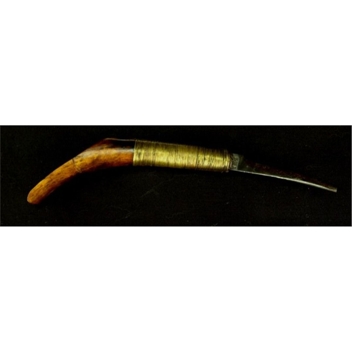 C. 1840-1860's Great Lakes knife with wrapped hand carved wood handle with IXL fur trade era blade, 9 1/2".