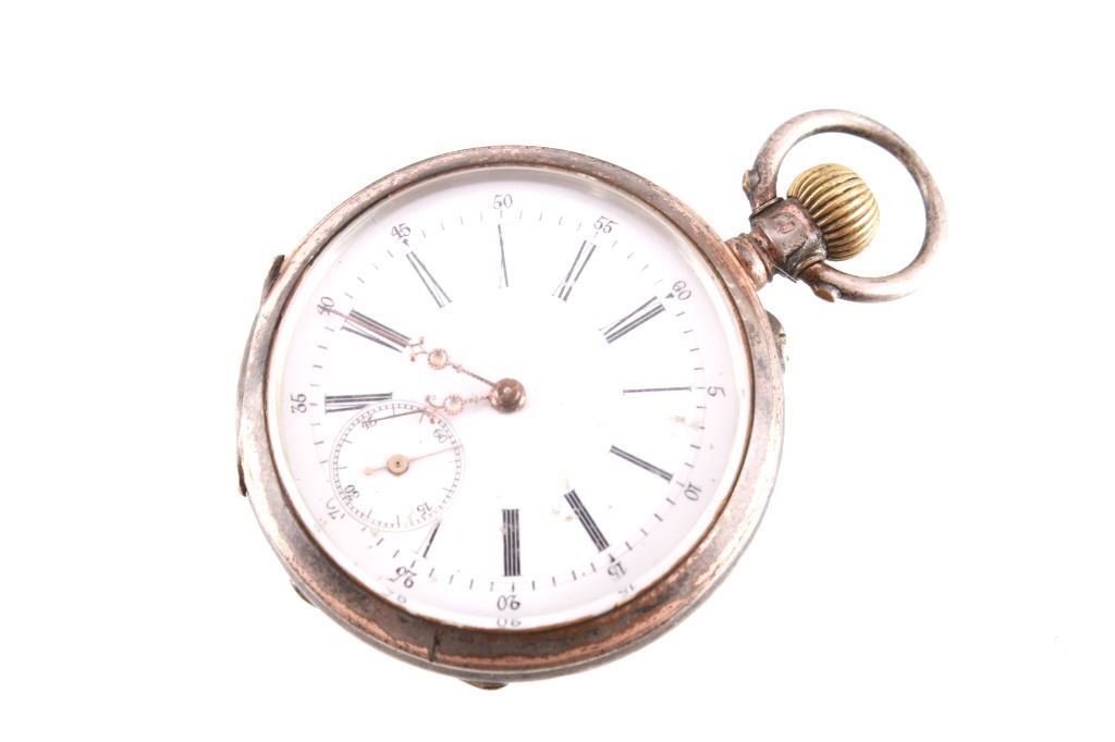 For your consideration is a 1850-1880, Swiss-made silver plated pocket watch with gold wash plating, inscribed "Cuivre", French for copper or brass, meaning the inside dust cover is made from one of these materials, as opposed to the rest of the case which is silver, also inscribed "Remontoir Cylindre 8 rubis", which means winding button (which supplanted winding keys) cylinder style escapement, 8 jewels. Left to its own devices, the mainspring of a watch would wind down in a matter of seconds. The escapement is the part of the watch mechanism that keeps this from happening, forcing the mainspring to instead unwind at a slow, regular pace. The regular interaction of the various parts of the escapement is what literally makes a watch "tick." Piece is in remarkably good condition for its age, much of the gold wash is faded showing the silver beneath, not in working order, 1.75" diameter