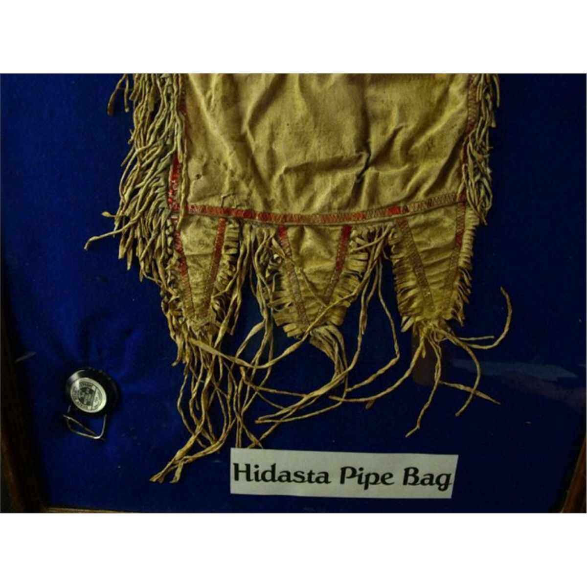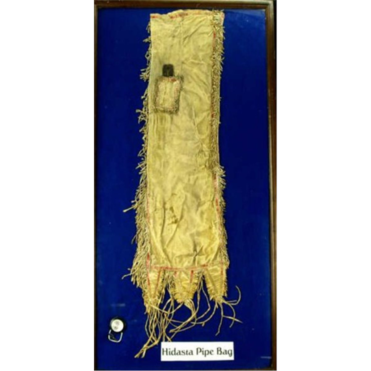 C. 1860-1870's Mandan Hidatsa pipe bag built in strike a lite pouch, quilled and fringed borders, 34" long.