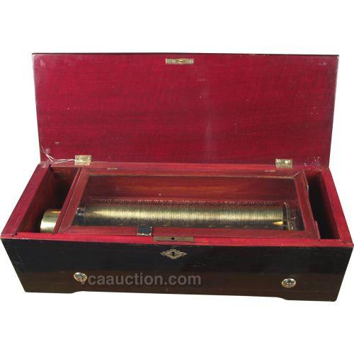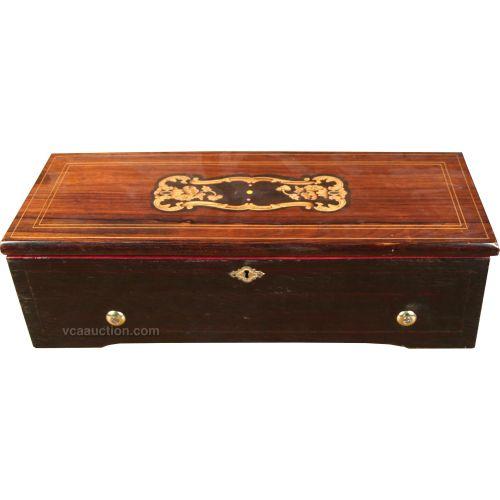 Bornand Piano-Forte 11" Keywind 6 Air Cylinder Music Box, Inlaid lid, Fresh Restoration.